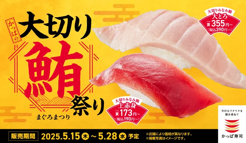 5月15日から開催されるかっぱ寿司の『かっぱの大切り鮪祭り』期間限定メニューを追加しました。