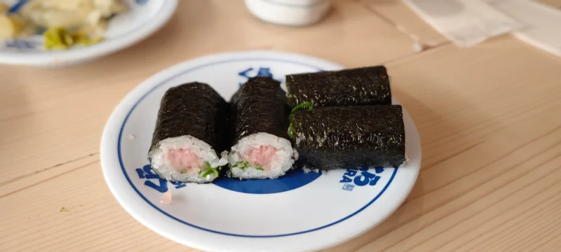 まずは「ねぎまぐろ鉄火」。くら寿司では一番コスパがいいとオススメできるほど大好きなお寿司。4切れで最安値 115円皿なのもありがたい!