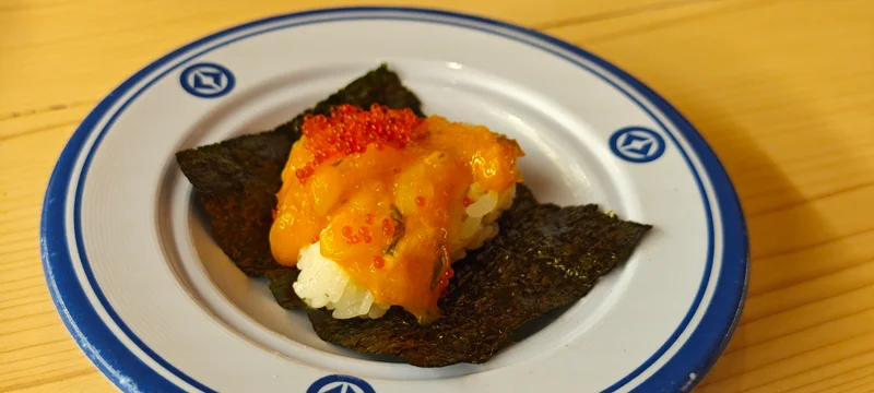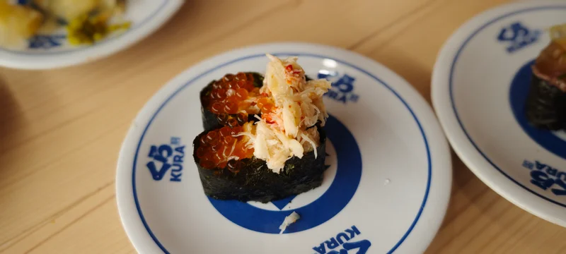 ただ、いくらとカニをそれぞれで味わいたいという気持ちも少しばかり感じたので、その場合にはいくら(190円)とずわい蟹系のお寿司を別々で頼んでシェアするのが良いかもしれません!