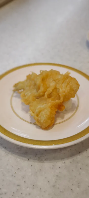 揚げたてサクサク衣とほろほろの白身。天つゆ風のタレが香ばしく、軽いのに満足感あり。