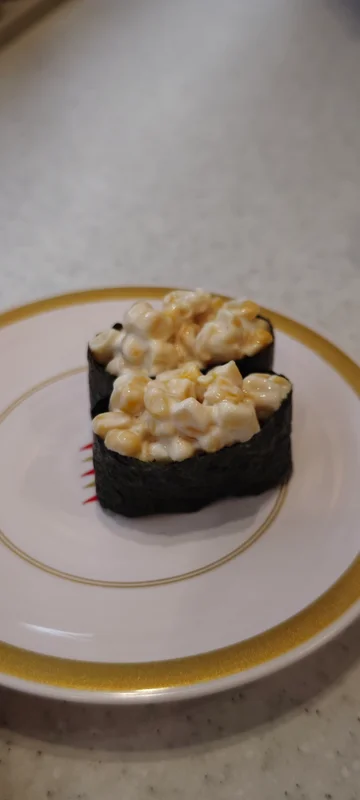 甘いコーンとマヨの定番軍艦。名前のとおり、子どもの頃の「感動」を思い出す味。