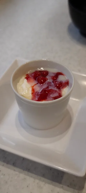 杏仁のミルキーさに、いちごの甘酸っぱさ&練乳のコク。デザートまで生乳系で大満足。