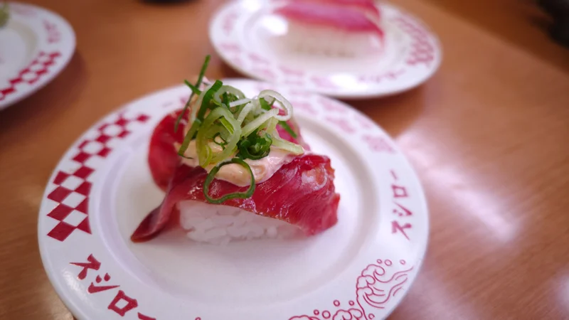 スシローこだわりの一品。40kg以上の大型めばち鮪を厳選し、温塩水でじっくり解凍されているそうです。煮切り醤油の優しい味わいが、まぐろの濃厚な旨みをさらに引き立てています💯 ねっとりとした食感と深い味わいが堪能できました。
