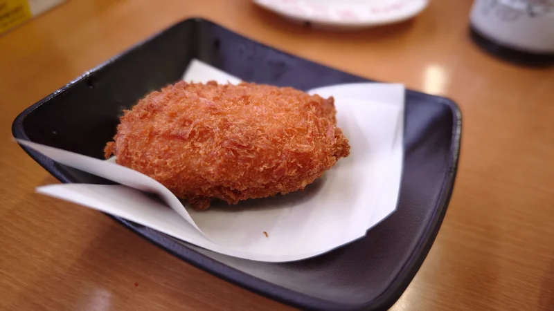 前回の期間限定メニューながら、まだ残っていたラッキーな一品。サイズが大きく、衣サクッ、中とろ~りのカニクリームコロッケ。蟹身は多くないですが、カニクリームとしてはかなり満足度高め。これは“あったら頼み”レベルでおすすめ!
